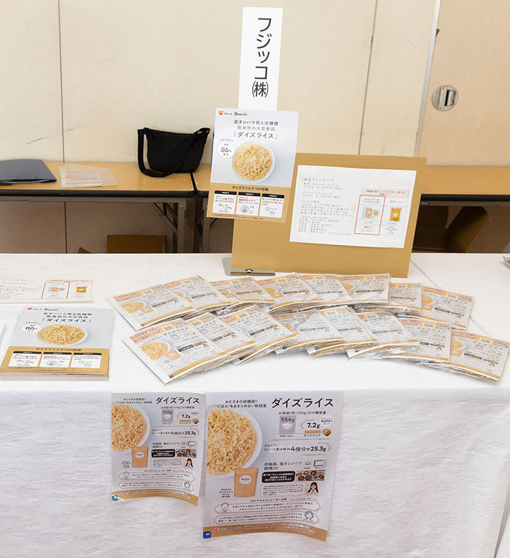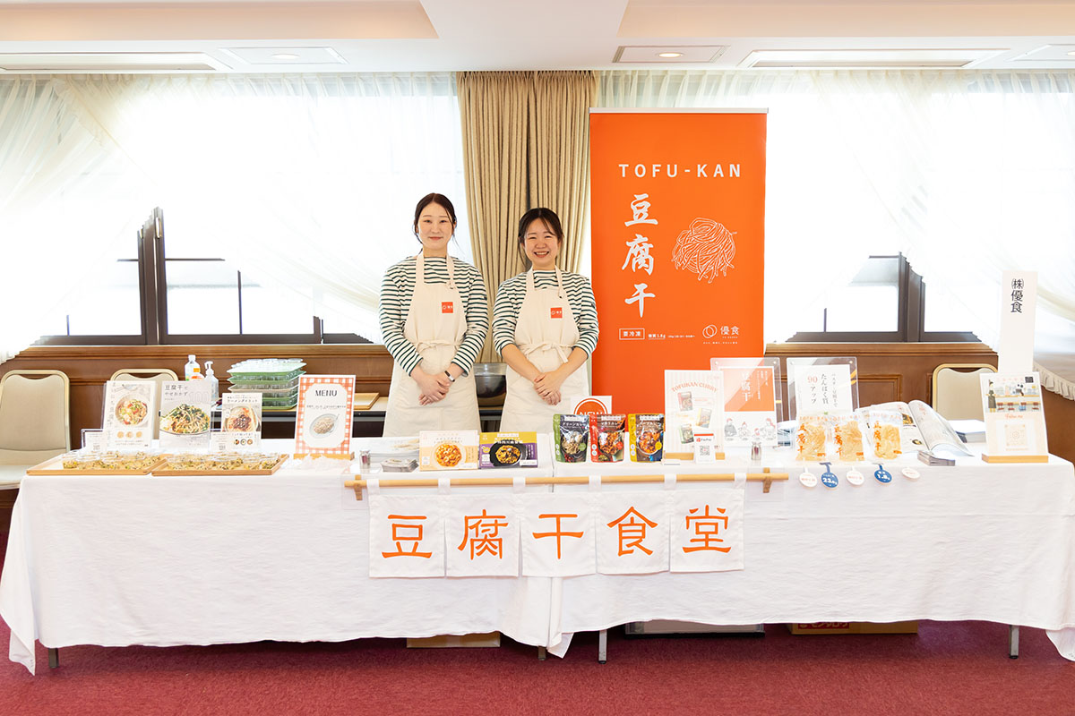 中華圏の伝統食品である豆腐干は、豆腐に圧力をかけて水分を抜き、乾燥させたもの。和洋中エスニック、どんな料理にも使いやすい、いま注目のヘルシー食材です。試食には「豆腐干とひじきとごぼうのデリ風サラダ」が提供され、来場者からは「もちっとした独特の食感がいい」「どうやって使うの?」といった声も聞かれ、関心の高さがうかがえました。