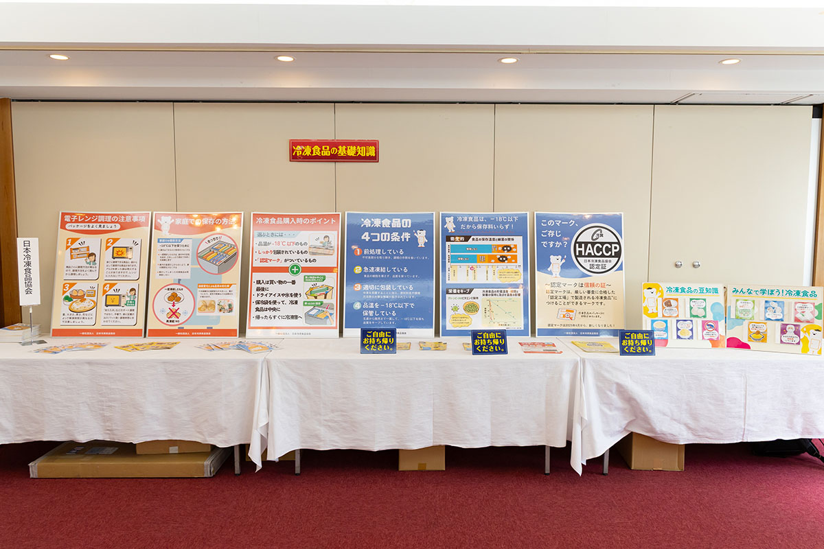 さまざまな資料をとりそろえ、パネルや映像を通して、冷凍食品の基礎知識を発信。きびしい審査に合格した認定工場で製造される冷凍食品につけることができる認定マークは、HACCP※に対応していることが明示されたデザインに刷新されました。