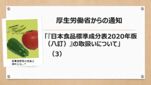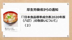 渡邊智子 学校法人食糧学院 東京栄養食糧専門学校 校長 栄養士・管理栄養士の皆さんが注目すべき「『日本食品標準成分表2020 年版(八訂)』の取扱いについて」(厚生労働省健康局 健康課長通知「健健発0804第1号」:令和3年8月4日)のご紹介の2回目です。 ぜひ、全文をごらんください。 通知の内容は […]