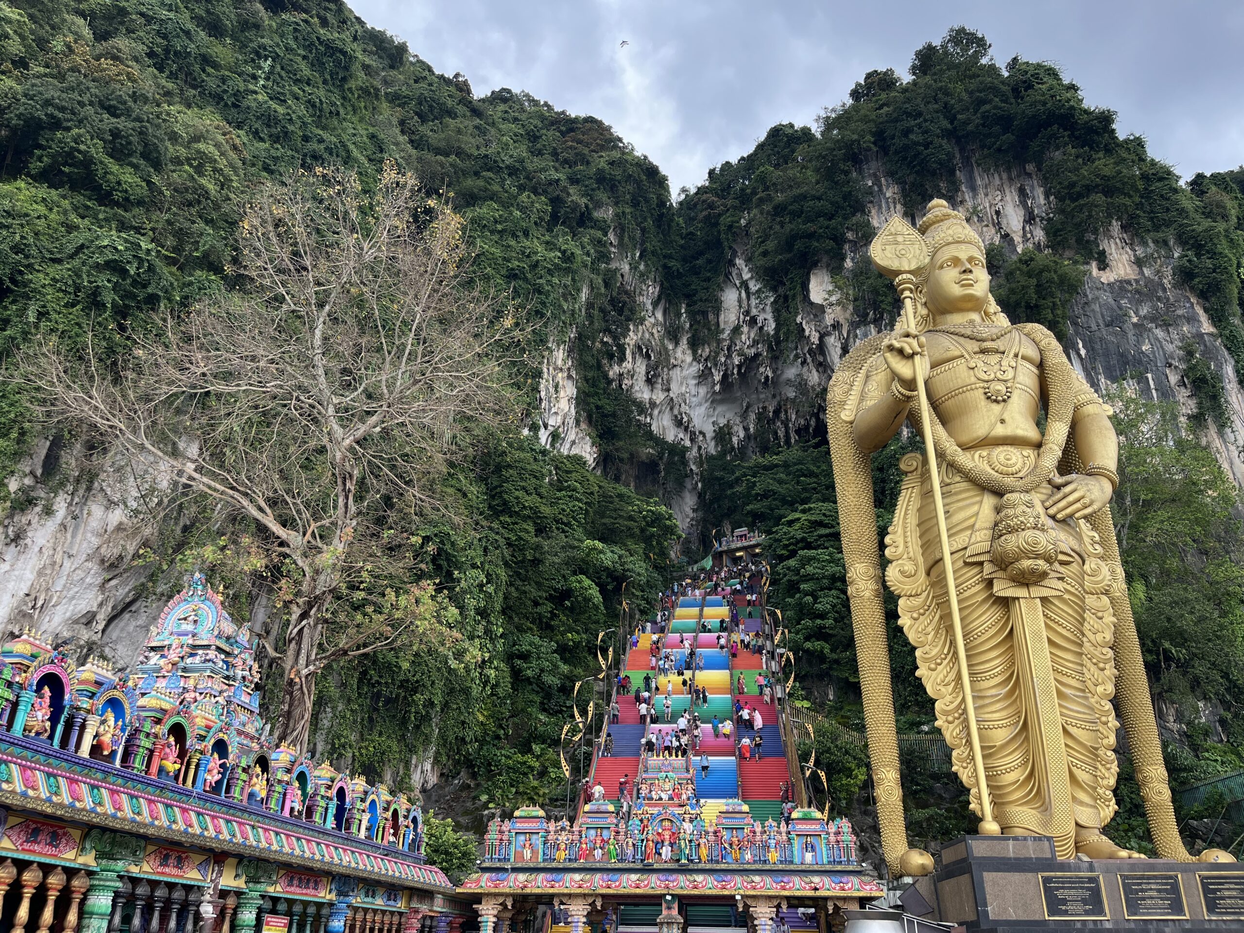 マレーシアのヒンドゥー教寺院であるバトゥ洞窟の色鮮やかな階段は、同国の多様性を示している(2025年に撮影)。