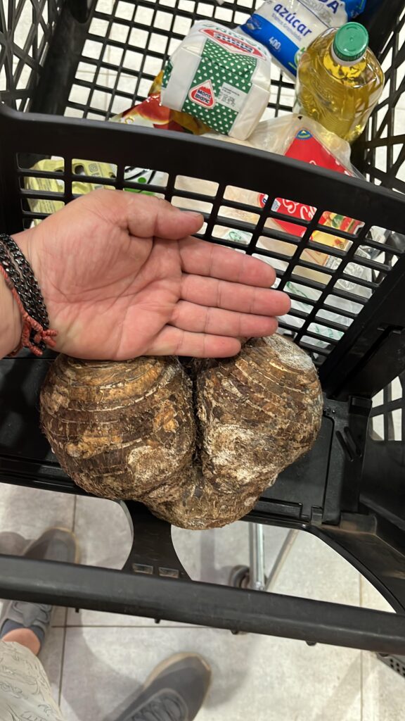 (写真1枚目)カペ。(写真2枚目) 市販されている大きなタロイモ。