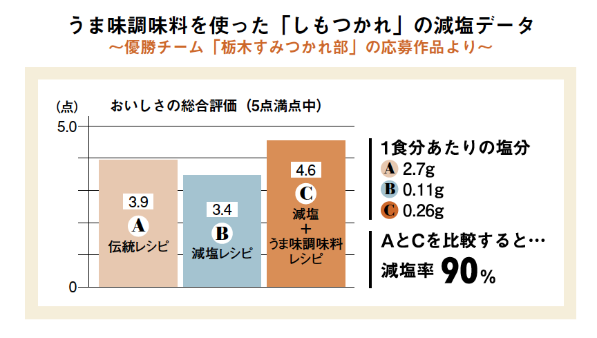 郷土の食文化を学び、健康的に若い世代へと残していく方法を探る「うま味調味料活用! 郷土料理コンテスト」。第10回の優勝チーム「栃木すみつかれ部」が考えた郷土料理の減塩レシピをご紹介します。