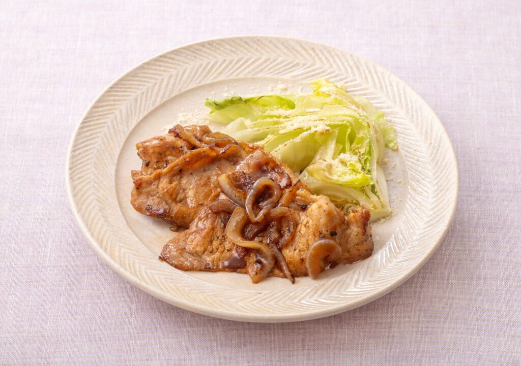 【主菜】豚肉と玉ねぎのバルサミコしょうゆ焼き