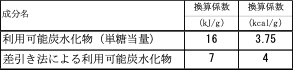 表2 利用可能炭水化物のエネルギー換算係数